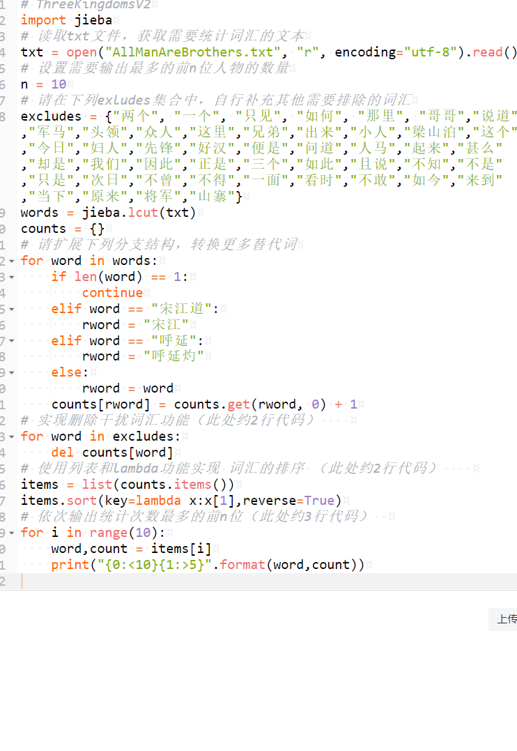 (结合教材中“三国演义”词频统计的例子)