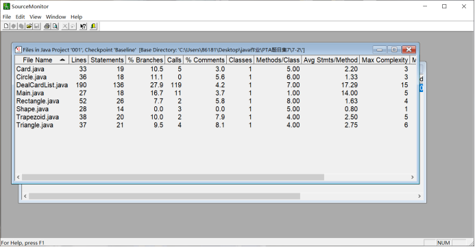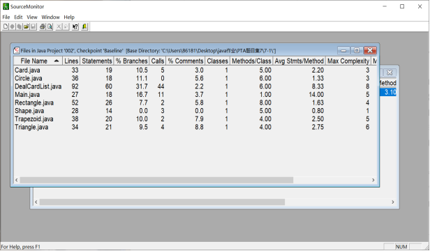 7-1和7-2的代码复杂度大部分都不高,两道题目中的Dealcardlist类中的复杂度较高,7-1的为8,而7-2的为15,主要是在Dealcardlist类中使用了较多的if语句;