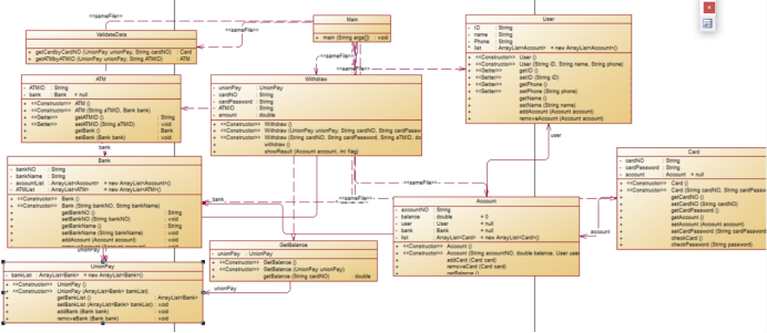 题目集8和题目集9都是ATM机的类结构设计,题目集8的要求是编写一个银行 ATM 机的模拟程序,能够完成用户的存款、取款以及查询余额功能,并且这次作业的银行卡都是借记卡(不能透支),也不允许跨行办理相关业务,难度降低了不少;