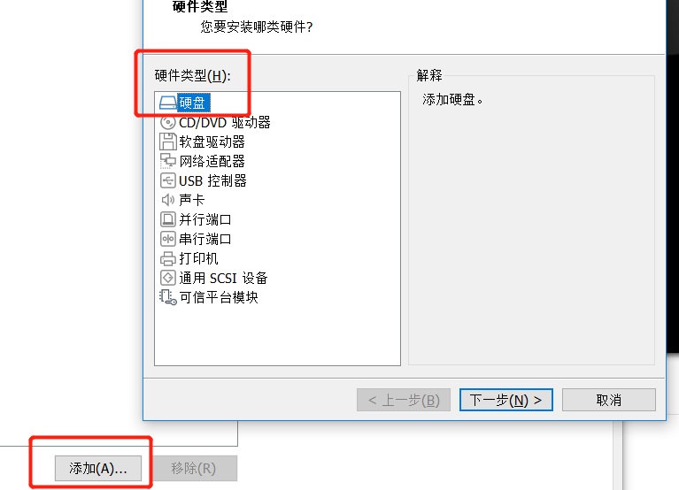 记住这种方式的前提是,该虚拟机已经有了一个在用硬盘,直接添加.