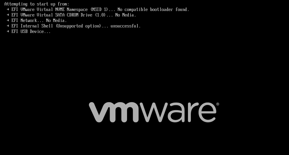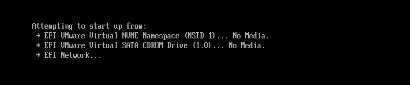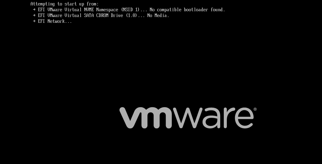 如果虚拟机没有识别到优盘,而当前磁盘刚好没有系统或者系统无法正常启动,于是,就会进入以下界面,进而无法正常启动.