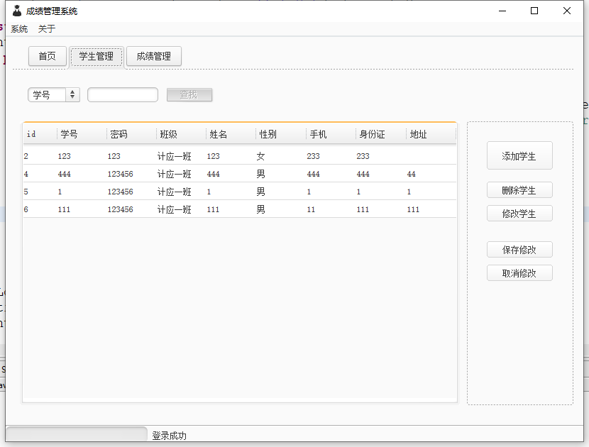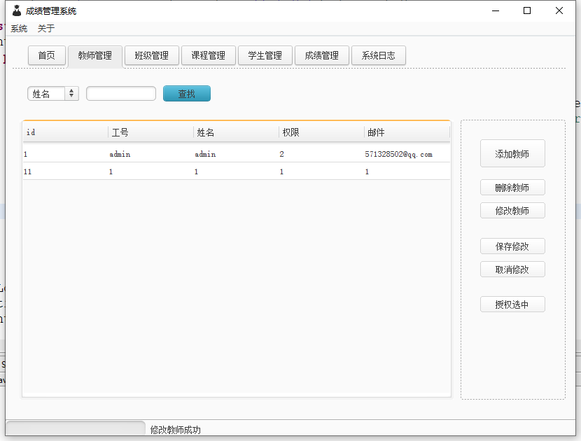 基于Java Swing+Mysql数据库的学生成绩管理系统系统,包含管理员、教师两级用户。主要有教师管理、班级管理、课程管理、学生管理、成绩管理、系统日志六个模块。