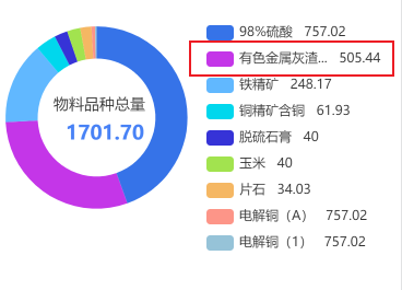 //原生图形的元素组件 graphic: [{ type: "text", //元素组件类型,支持多种,具体自行去官网查看吧! left: "12%", //元素组件距离echarts容器左侧的距离,可支持具体像素值 top: "33%", //元素组件距离echarts容器上侧的距离,可支持具体像素值 style: { text: "物料品种总量", textAlign: "center", //水平对齐方式 fill: "#333333", //填充颜色,可以理解为文本颜色(其实就是改变了文本颜色) fontSize: 14 //字号 }, }, { type: "text", left: "14.5%", top: "42%", style: { text: sum.toFixed(2), // sum:我在上面计算过了(自己扒拉一下上面的代码,好吧!);toFixed(2):两位小数 textAlign: "center", fill: "#4882F6", fontSize: 18, fontWeight: 700 //字重,可以理解为字体的粗细 } }],