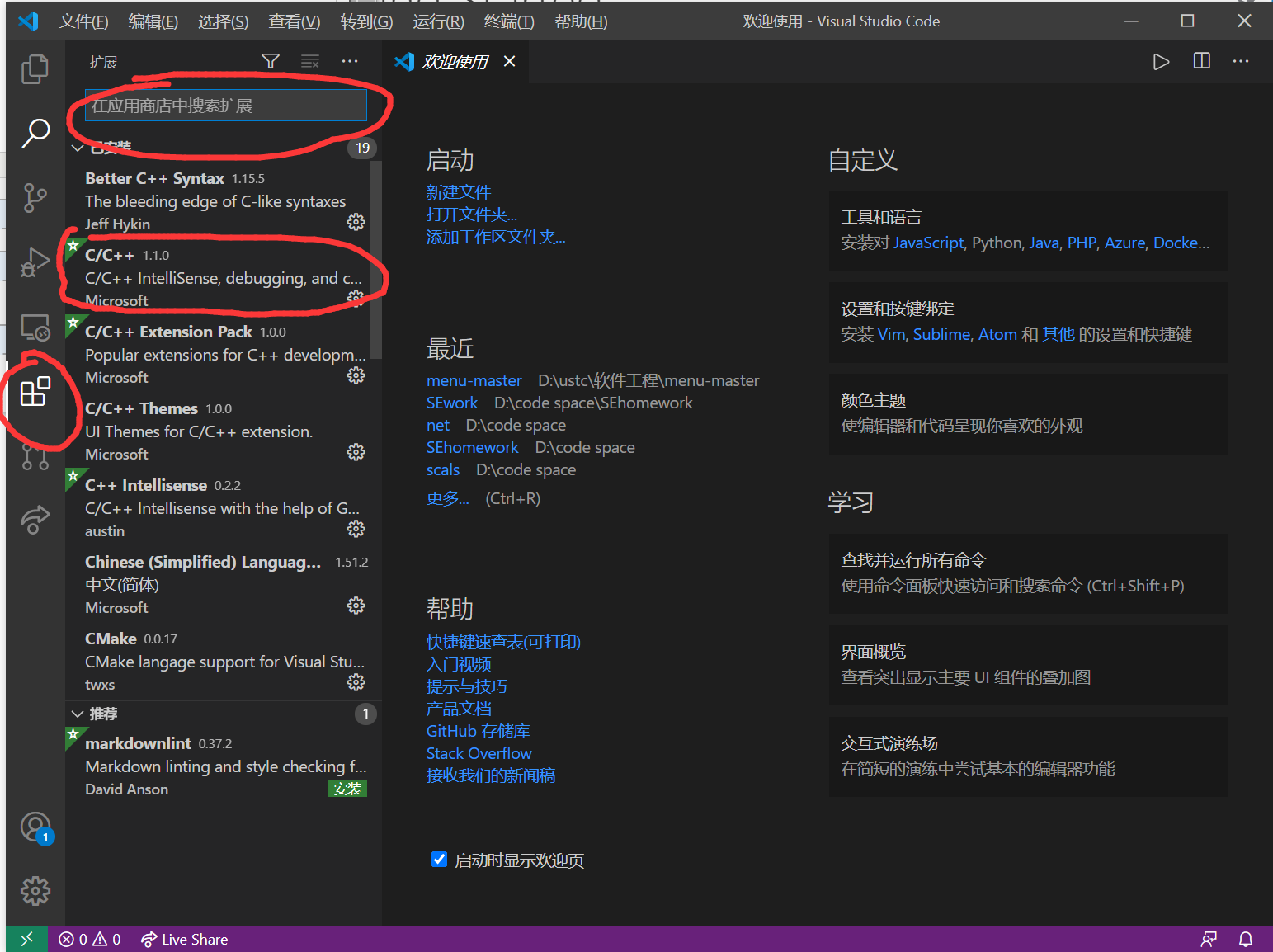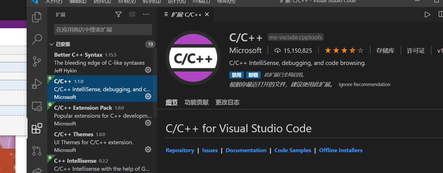 先打开扩展页面,搜索c,打开如下图,安装即可。