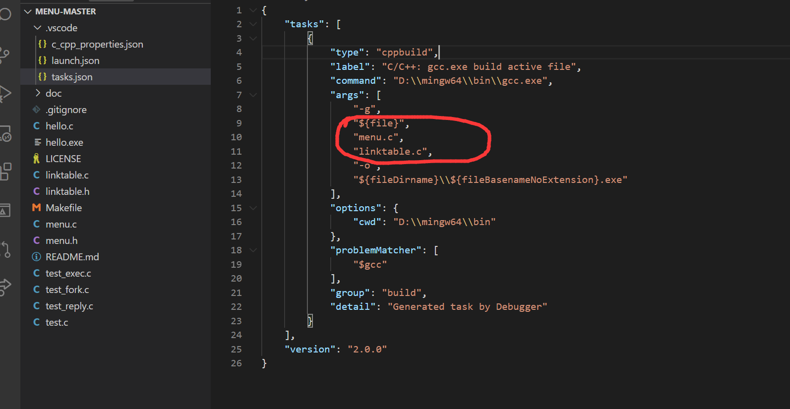 { "configurations": [ { "name": "Win32", "includePath": [ "${workspaceFolder}/**", "D:/mingw64/include/*" ], "defines": [ "_DEBUG", "UNICODE", "_UNICODE" ], "compilerPath": "D:/mingw64/bin/gcc.exe", "cStandard": "c11", "cppStandard": "c++17", "intelliSenseMode": "gcc-x64" } ], "version": 4 }
