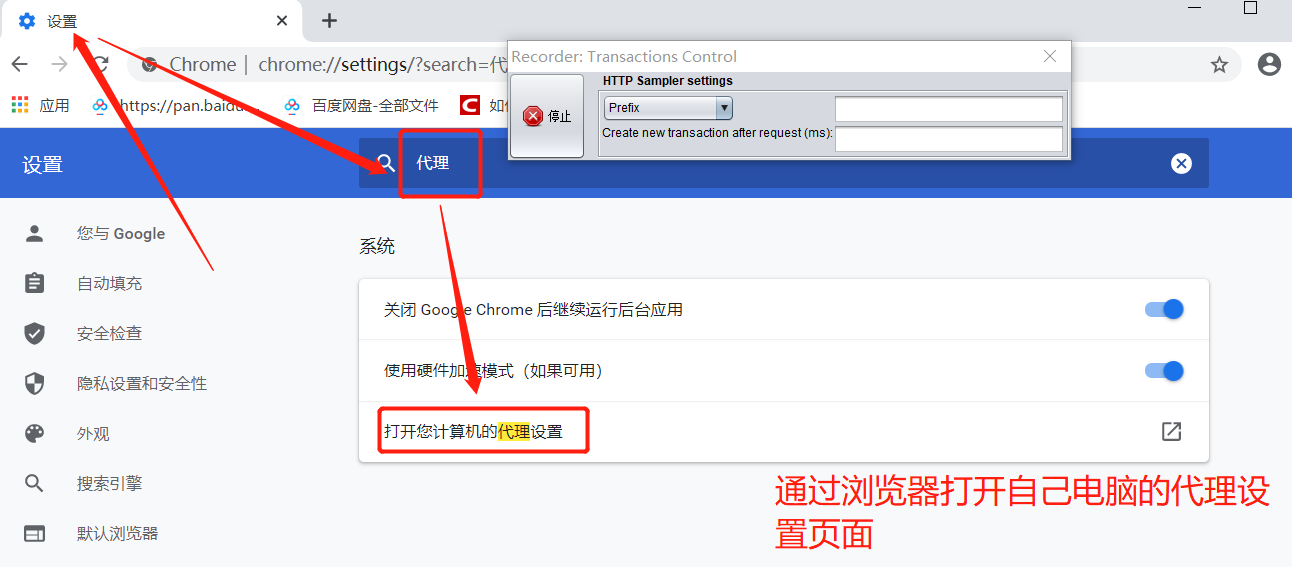 7.打开浏览器 --> 打开设置页面 --> 搜索代理 --> 打开电脑配置