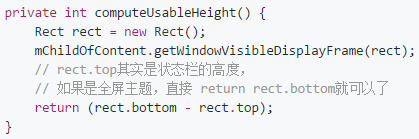 (4)重设高度, 我们计算出的可用高度,是目前在视觉效果上能看到的界面高度。但当前界面的实际高度是比可用高度要多出一个软键盘的距离的。