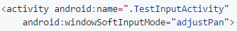 我们再在该类的 AndroidMainfest.xml 中设置 windowSoftInputMode属性 为 adjustPan: