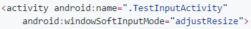 我们前面说过 adjustResize 的使用必须界面布局高度是可变的,如最外层套个 ScrollView 或是界面可收缩的,才起作用。这里在该类的 AndroidMainfest.xml 中设置windowSoftInputMode属性 为 adjustResize