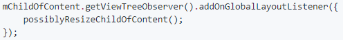 View.getViewTreeObserver() 可以获取一个 ViewTreeObserver对象——它是一个观察者,用以监听当前 View树 所发生的变化。这里所注册的 addOnGlobalLayoutListener,就是会在当前的 View树 的全局布局(GlobalLayout)发生变化、或者其中的 View 可视状态有变化时,进行通知回调。『软键盘弹出/隐 』都能监听到。