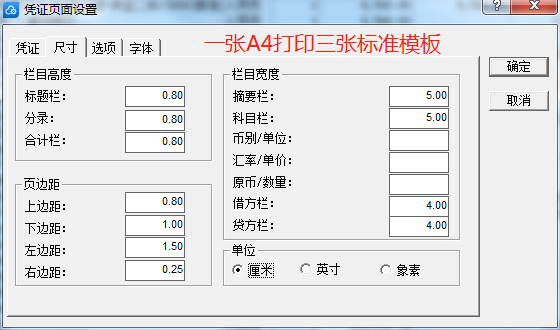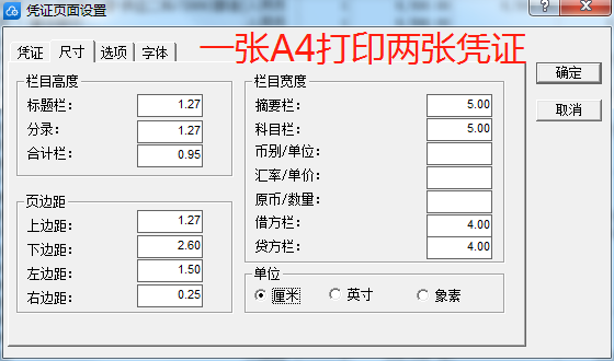 如果一张纸打印一张凭证,将每页分录数调成18,其他参数按照一张A4打印两张凭证设置