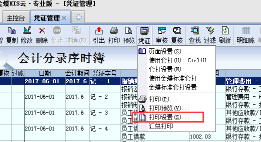 1、 进入软件凭证管理(金蝶迷你版、旗舰版和K3是凭证查询)先把使用套打勾去掉,效果如下: