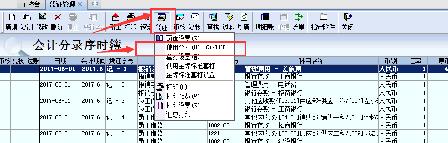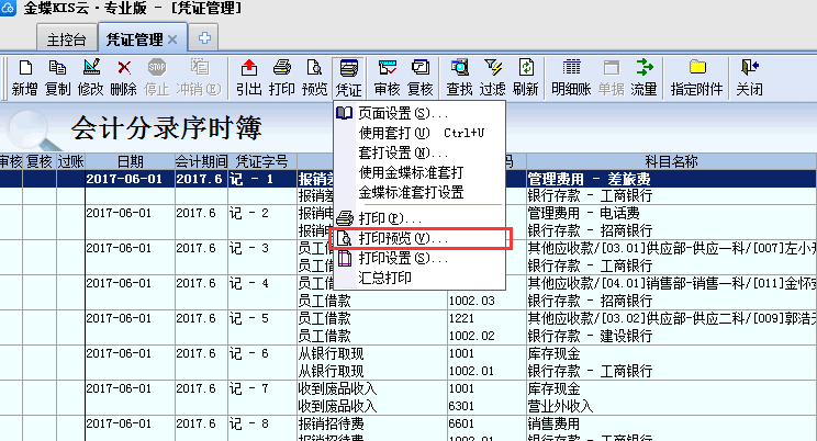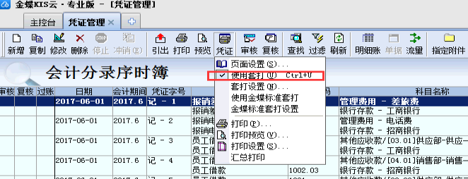 1、 进入软件凭证管理(金蝶迷你版,标准版,旗舰版,K3是凭证查询),勾下套打,效果如下: