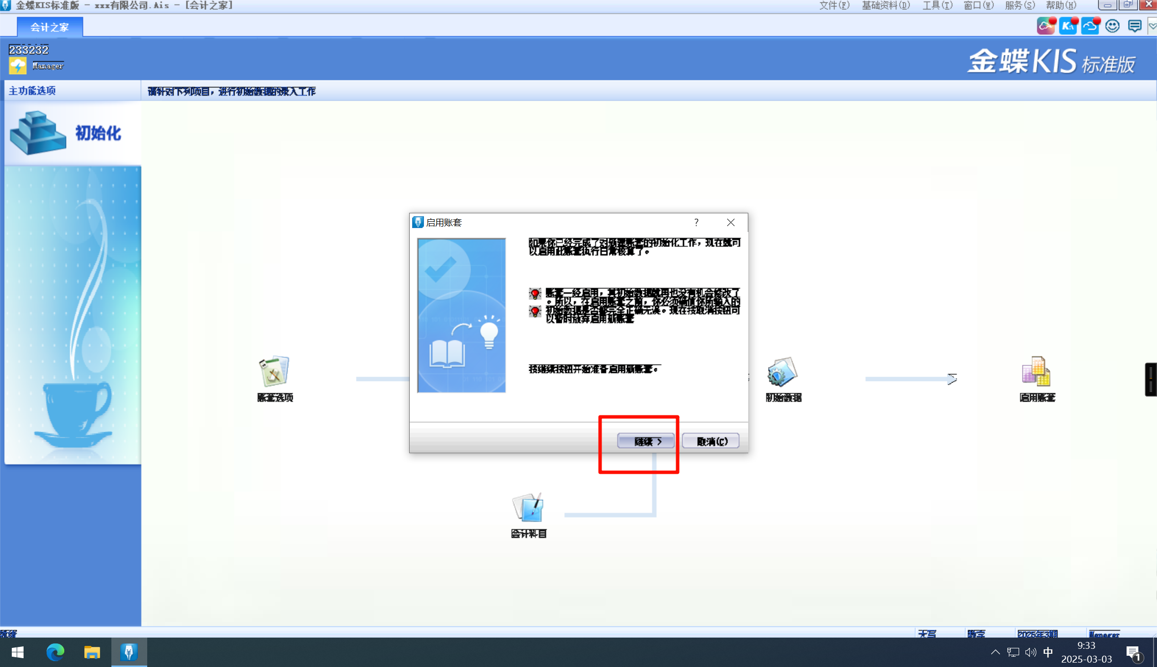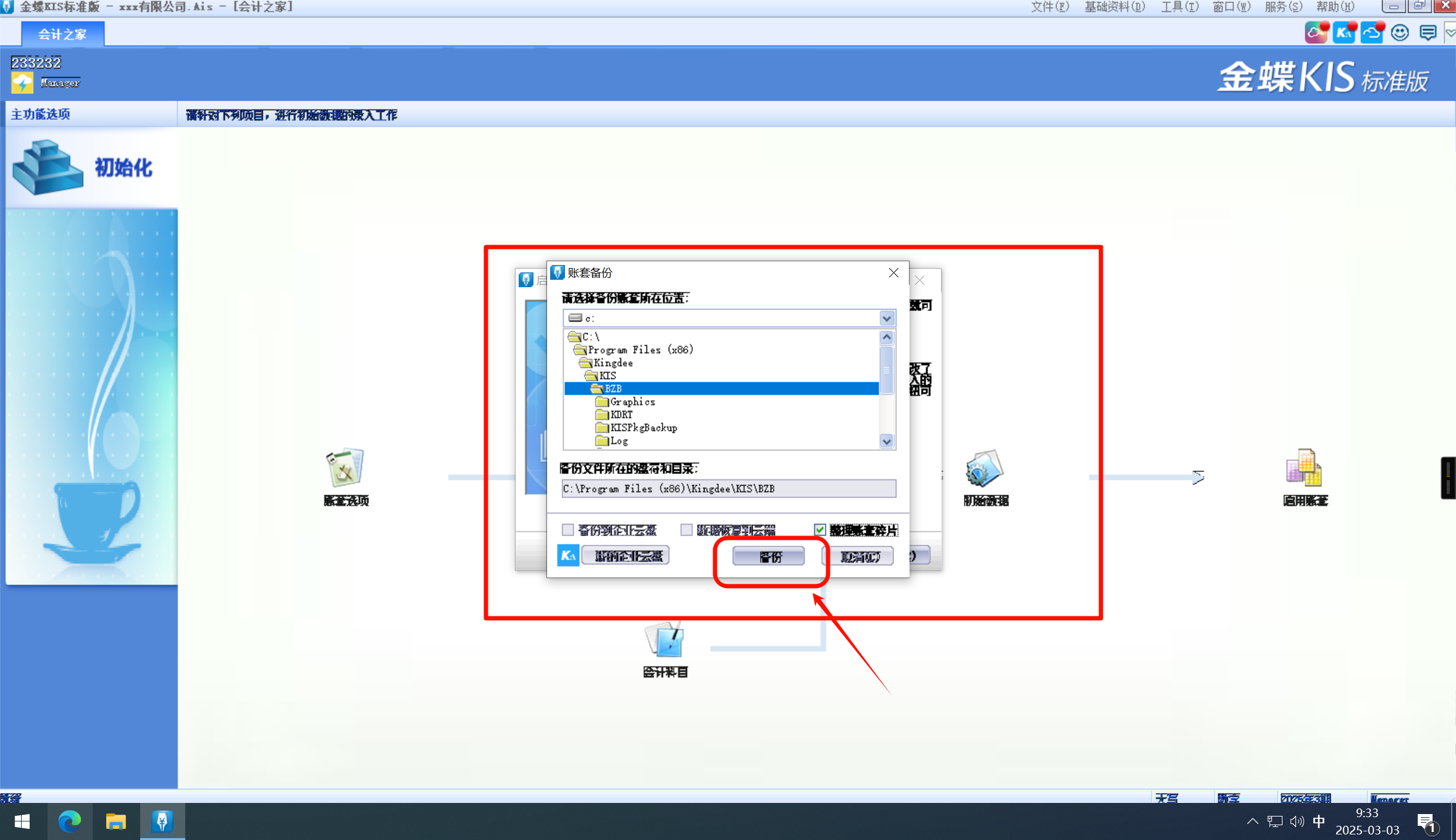 点击继续并备份账套