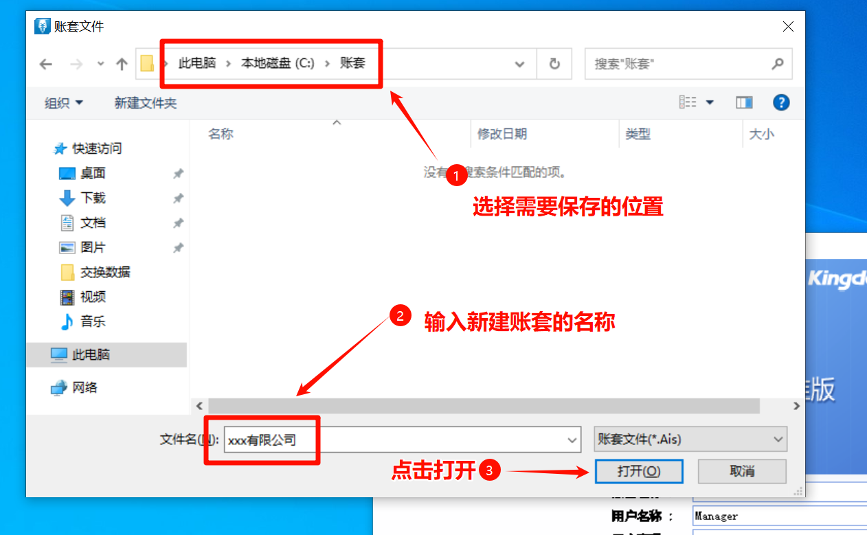 选择位置新建账套,输入账套名称