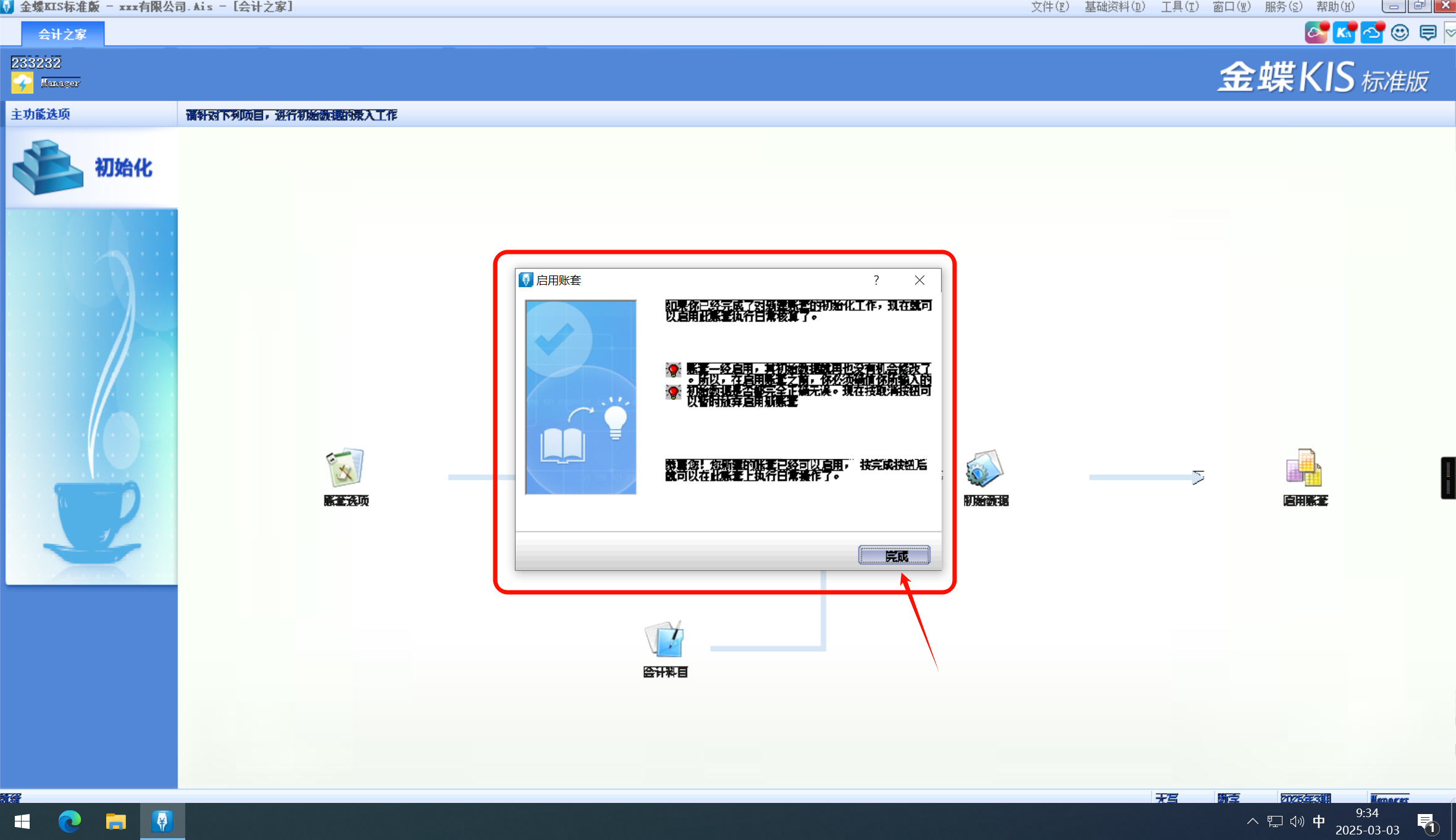 完成新建账套