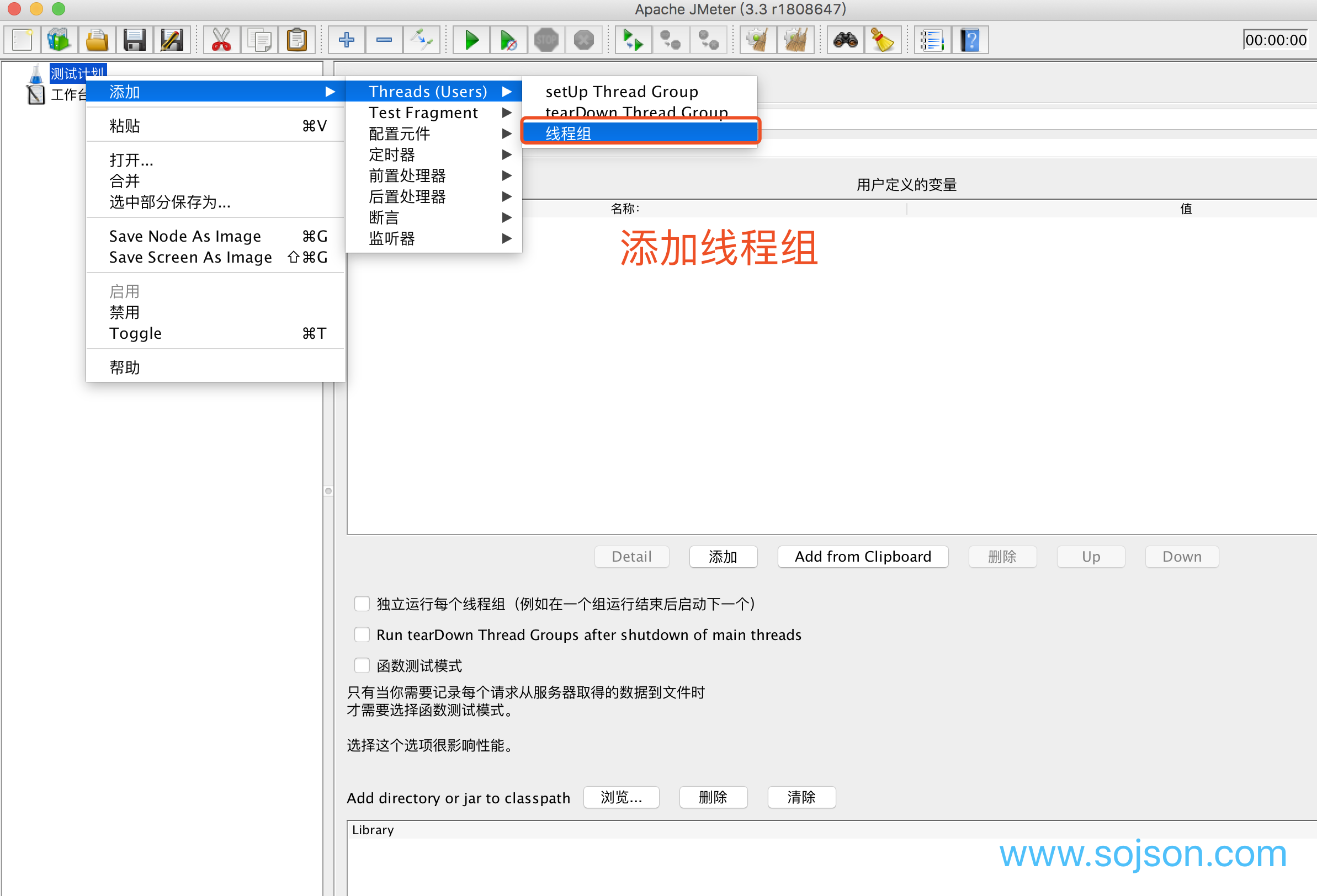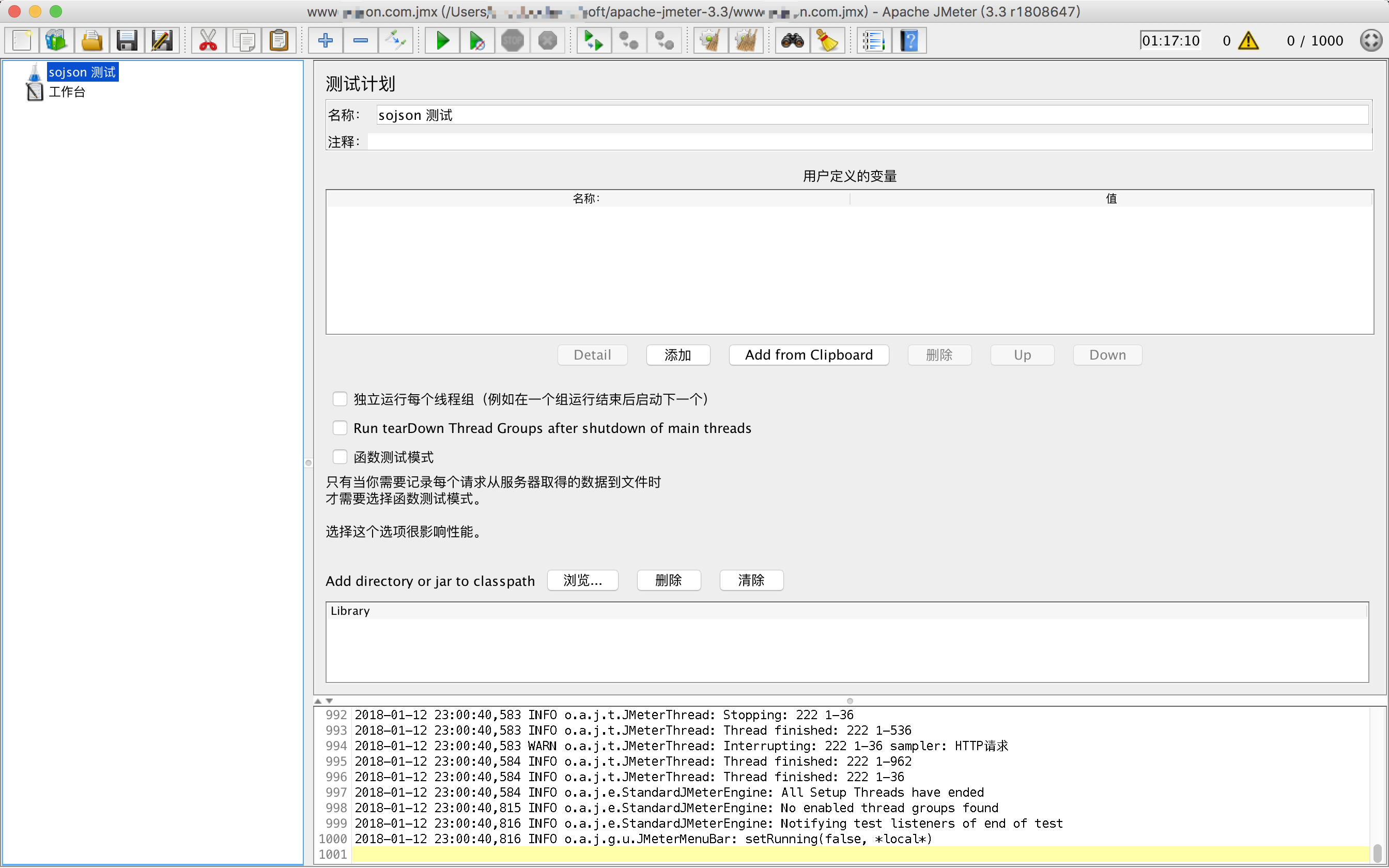 1.下载好,解压到对应的目录,我的目录是:/Users/sojson/soft/apache-jmeter-3.3