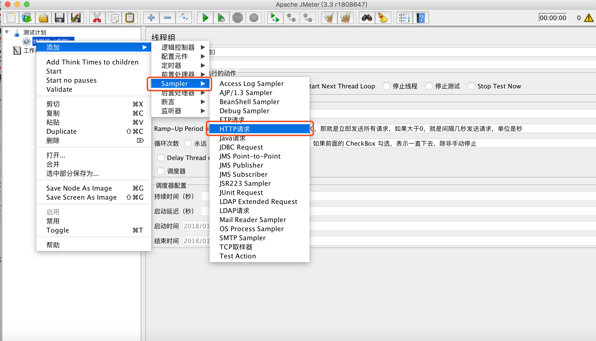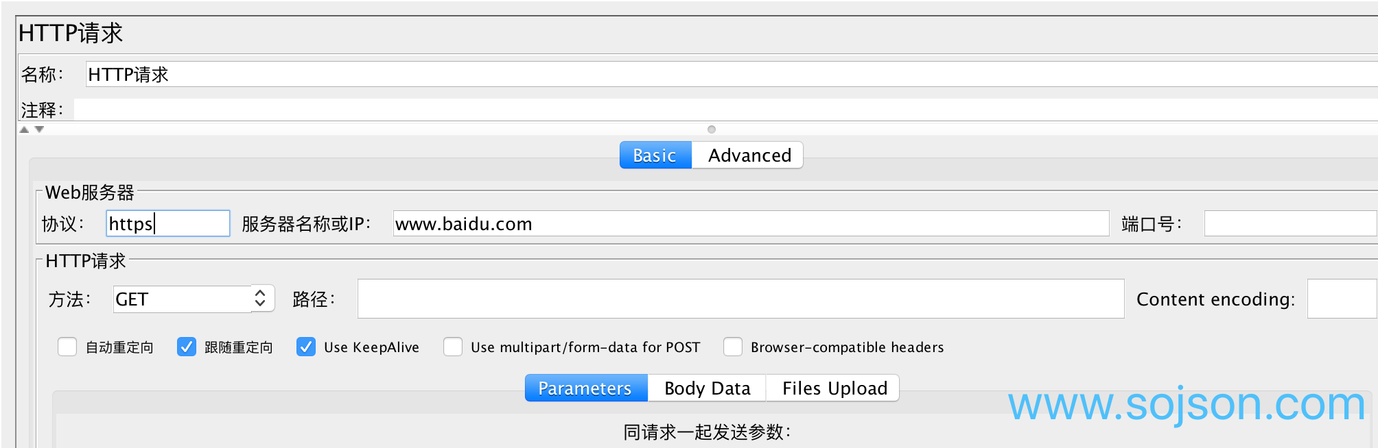 JMeter 支持很多请求,下面的栗子只针对 HTTP 请求做下测试。