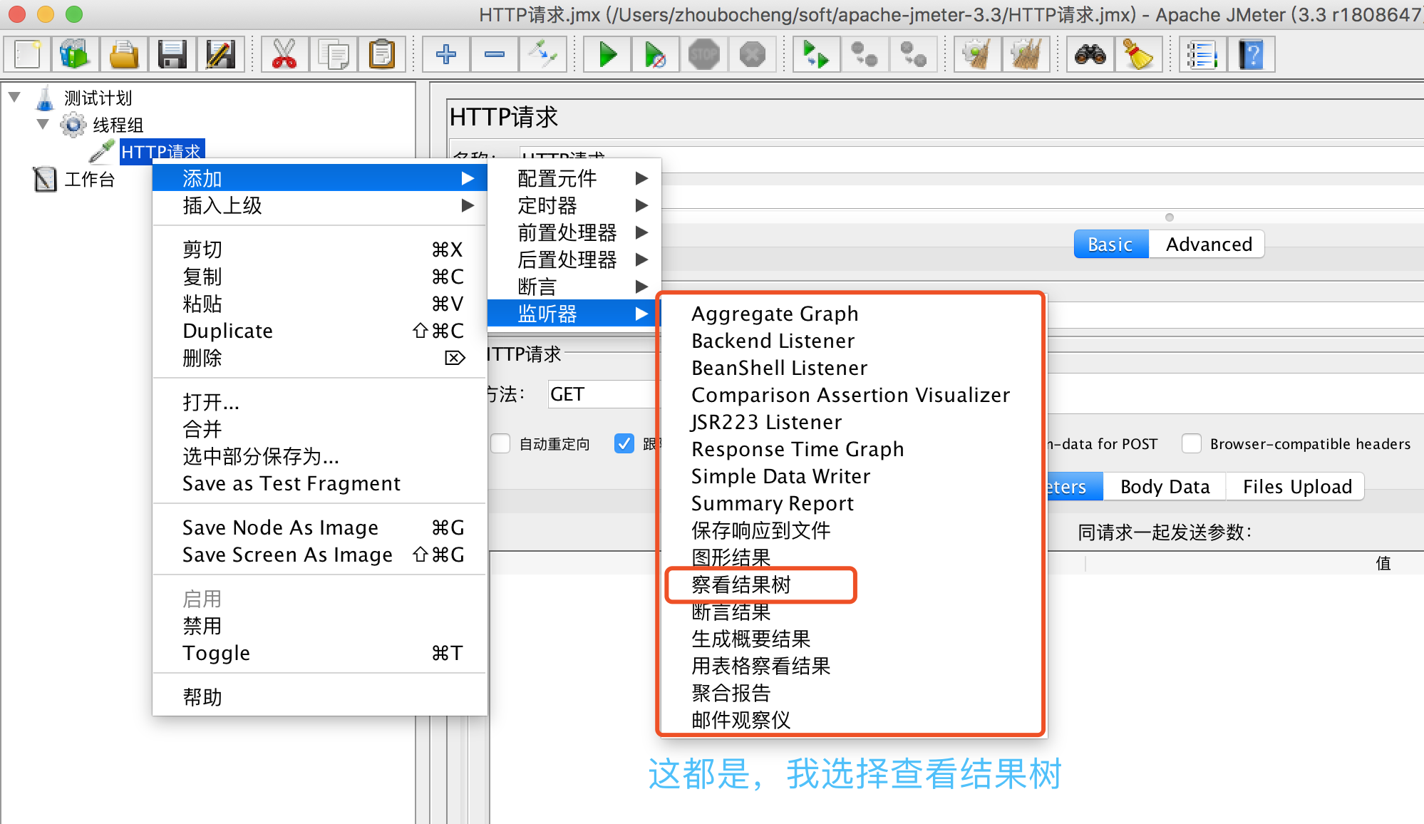 添加监听器后面的都是视图,我习惯用结果树。