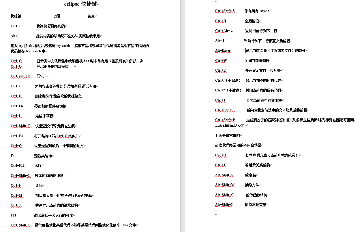 eclipse快捷键