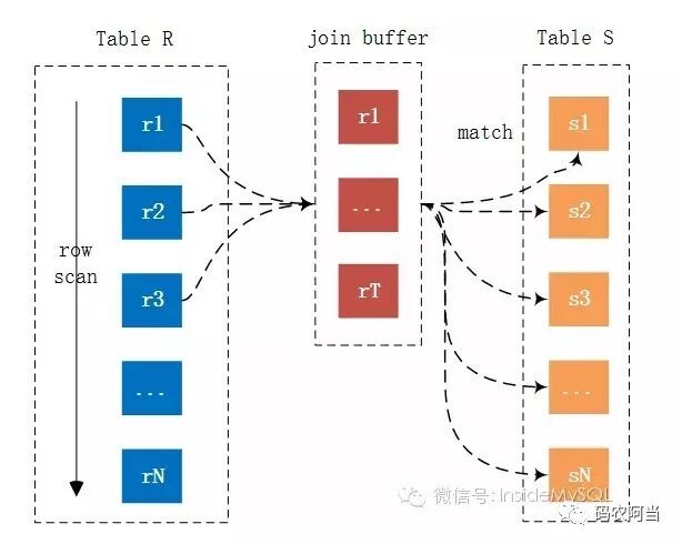 join原理参考下图,R是驱动表,S是被驱动表