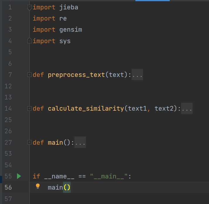 一共3个函数,分别是预处理文本,计算相似度,还有主函数