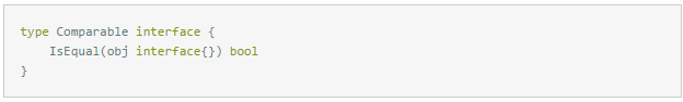 用户自定义类型万千种种,数组切片算法中不可能知道,所以需要通过interface提供的方法进行两个元素是否相等的判断。
