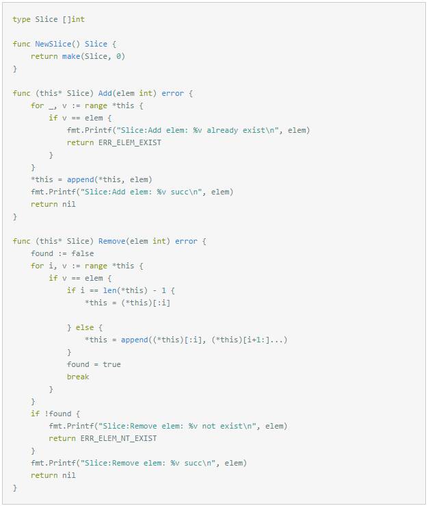 “哦,这个简单,我过会提供一个Slice类,有Add和Remove方法,支持整型。”我有点自信的回答。