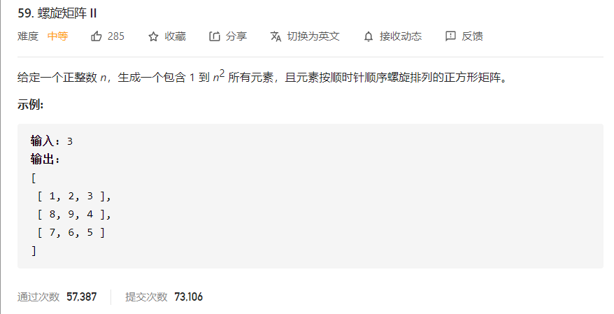 这是一道模拟题,我们首先定义一个二维数组,然后将他的边界定义出来,定义好边界后就开始往数组中放数字,每次到达边界,就改变方向,但注意奇数的螺旋矩阵最中间的数需要自己定义,否则会造成死循环