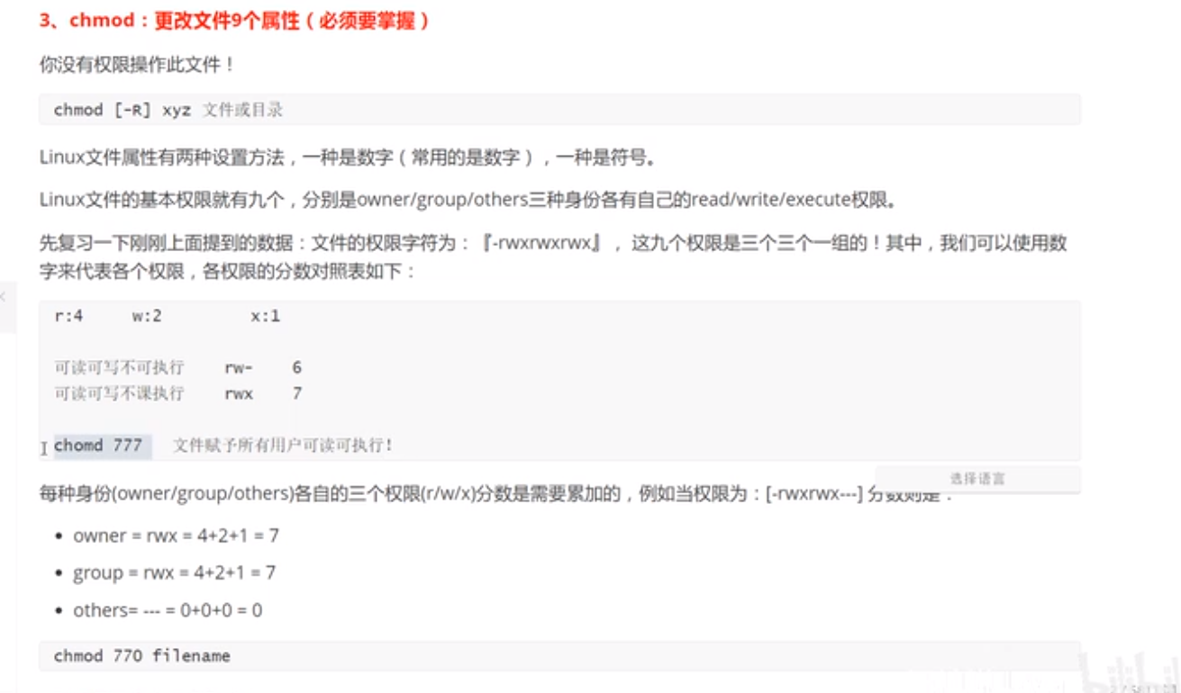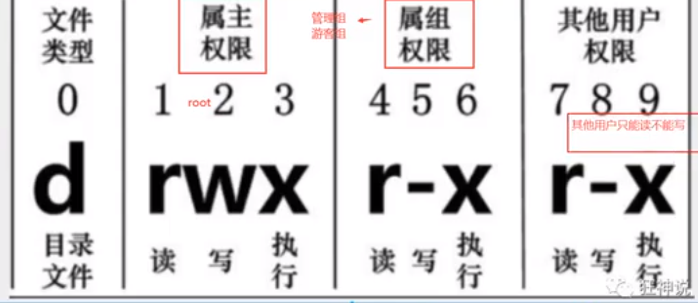 当为d时是目录 -为文件 l是链接文档 b是装置文件里面的可供存储的接口设备(可随机存储装置)c是装置文件里的串行端口设备,如鼠标键盘等