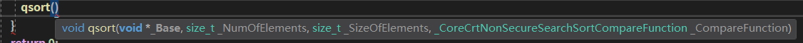 第一个参数是待排序的数组起始地址、第二个元素是元素个数,第三个元素是每个元素的大小,最后一个参数比较特别,是指向函数的指针