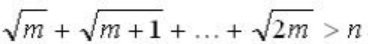 对指定正实数n(采用双精度浮点型表示),试求满足下面平方根不等式的最小整数m,并输出不等式左边的值。程序中浮点数的数据类型均为double。