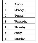char *weekDay[7] = {"Sunday", "Monday", "Tuesday", "Wednesday", "Thursday", "Friday", "Saturday"};