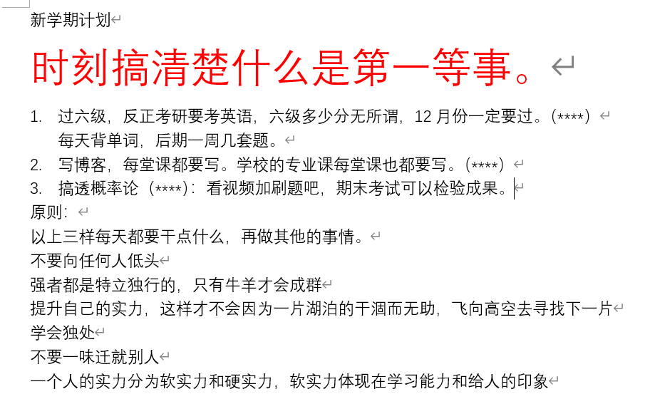 从高中开始我就很喜欢给自己做plan,但是大部分都只是完成了一个首字母(泪目)给大家看一下我这学期的计划: