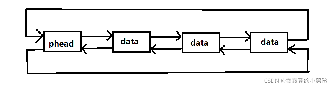 双链表与单链表的区别就在于通过一个元素既可以找到它的前一个元素,也可以找到它的后一个元素,使插入和删除更加方便,为了更方便找到链表尾部,并且每一个节点的建立一致,我们使用循环结构,但同时每一个节点还需要多存储一个指针。为了避免使用二级指针的麻烦,这里的双链表是带有头结点的。