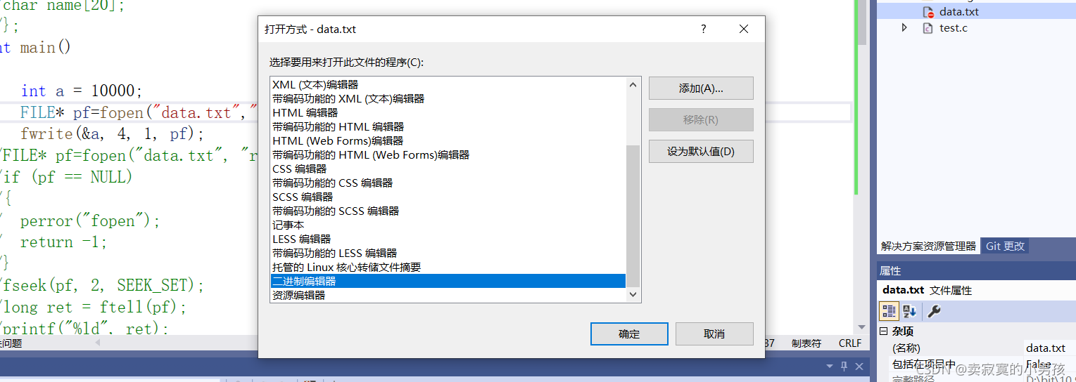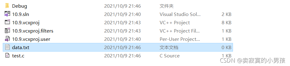 当文件不存在时,以写的方式打开文件会创建一个新的文件。我们打开.c文件的路径就会发现确实多了一个data.txt的文件。