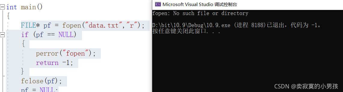 FILE* pf = fopen("data.txt","r");//以只读的方式打开一个不存在的文件