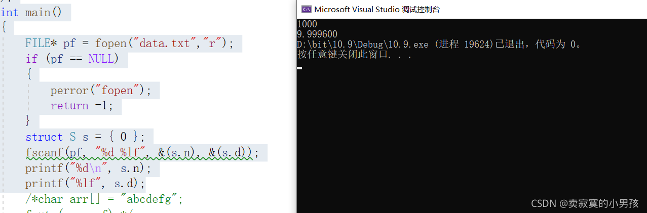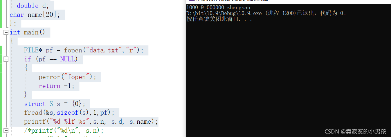 fread(&s,sizeof(s),1,pf);//将文件中内容读到结构体s中