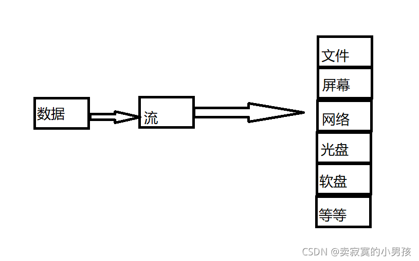 这个就是数据存入或者显示的过程,我们程序员只需要关心如何把数据存到流里,再由流自动分配到各个接收端。比如我们可以把一个数据存到文件里,存到网上,存到光盘里等等都是流帮助分配的。