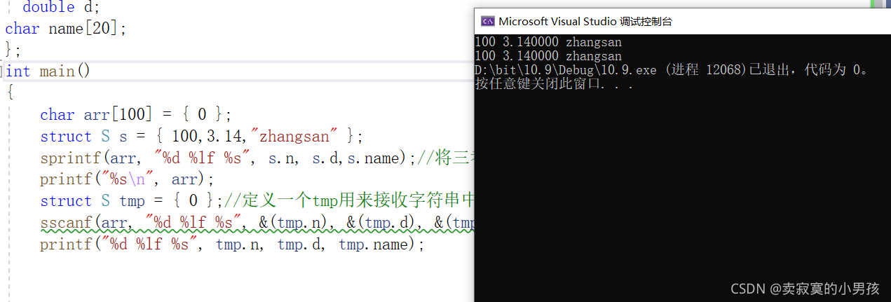 struct S tmp = { 0 };//定义一个tmp用来接收字符串中信息。