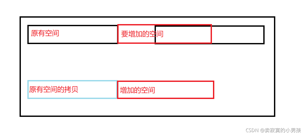我们知道在开辟空间的时候,开辟的空间在内存中是随机分布的。当我们在原有空间基础上增加空间时,如果原有空间后有足够的空间可供增加的时候我们是直接进行增加的。
