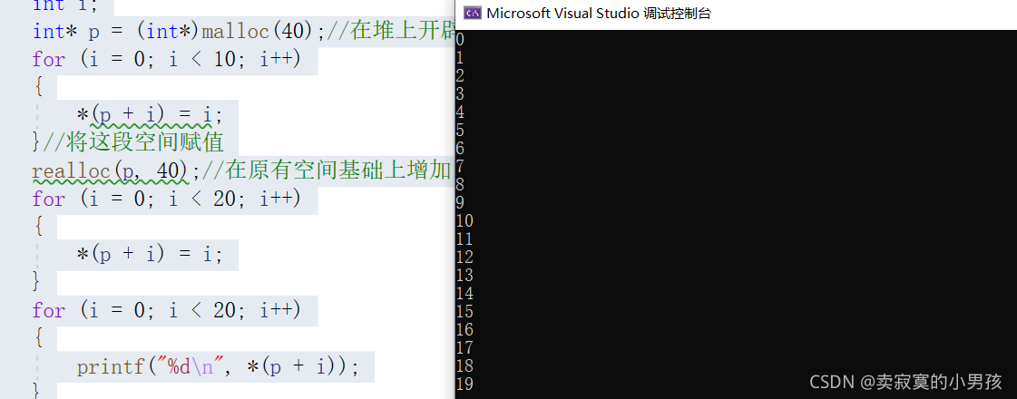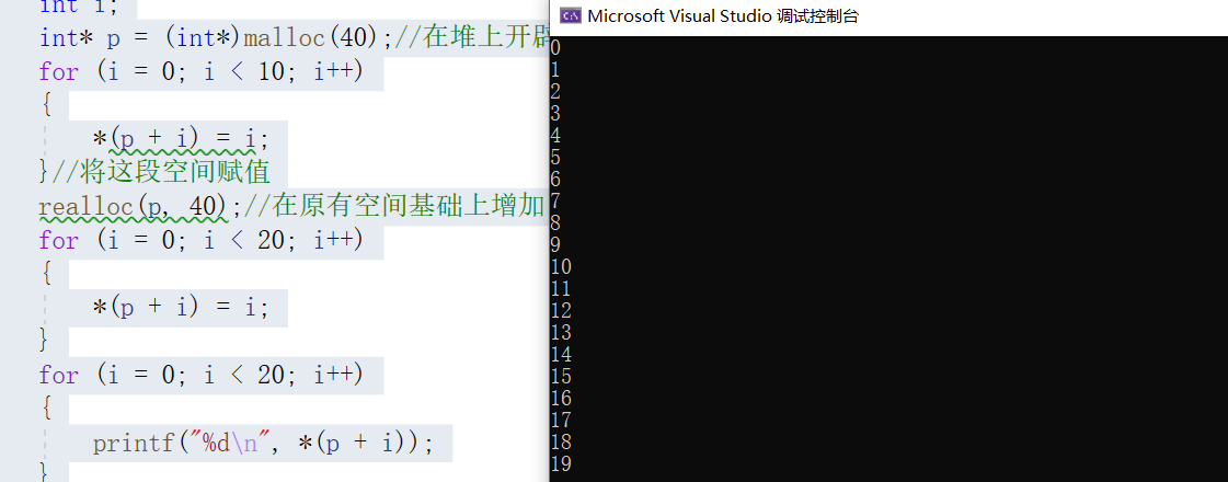 realloc(p, 40);//在原有空间基础上增加了40个字节