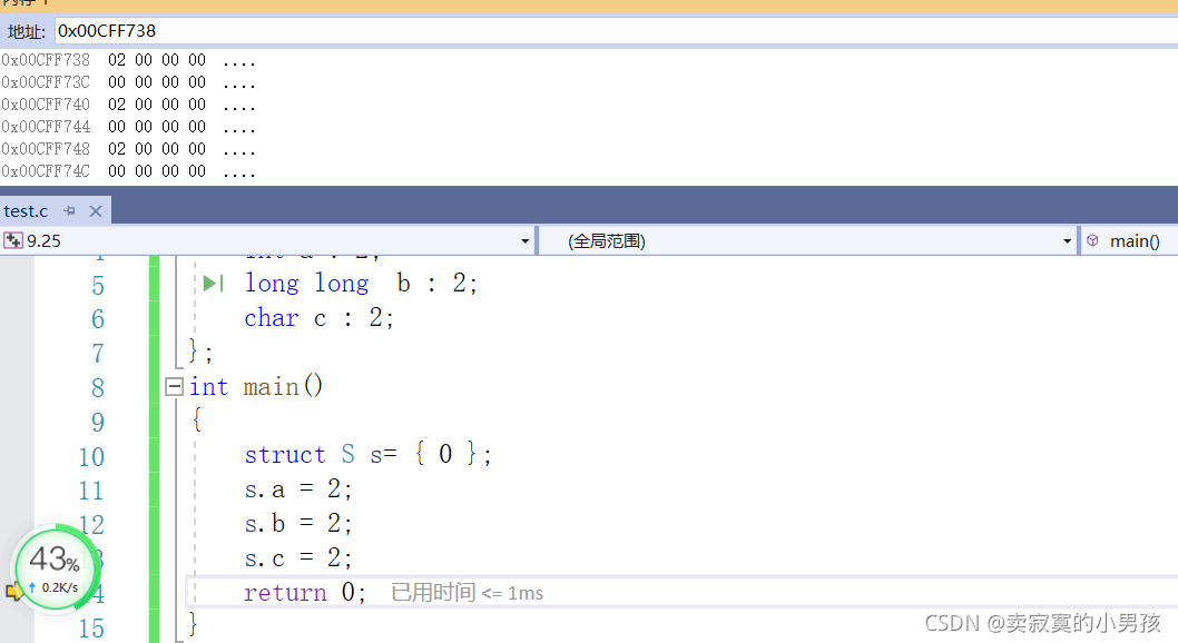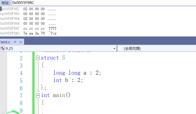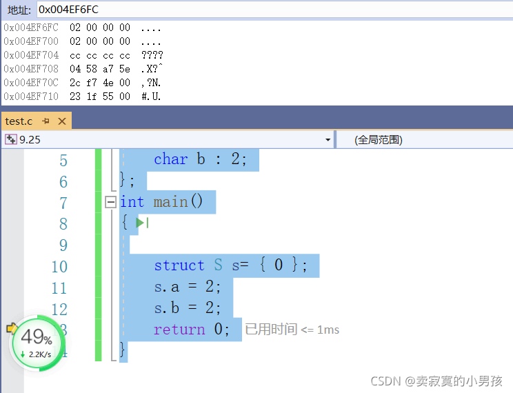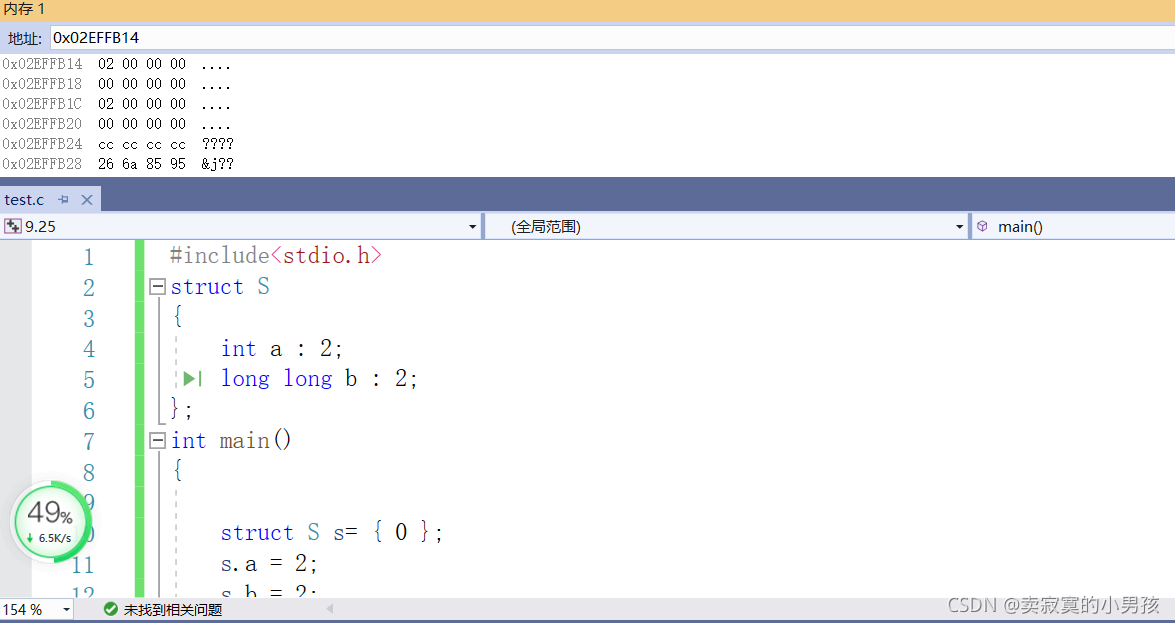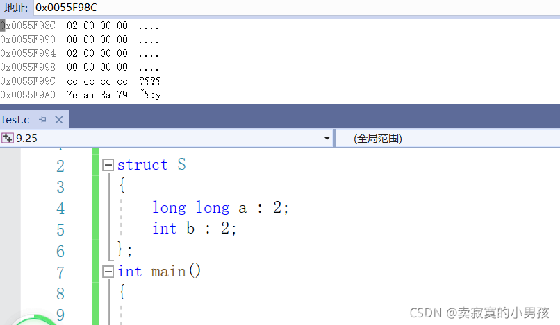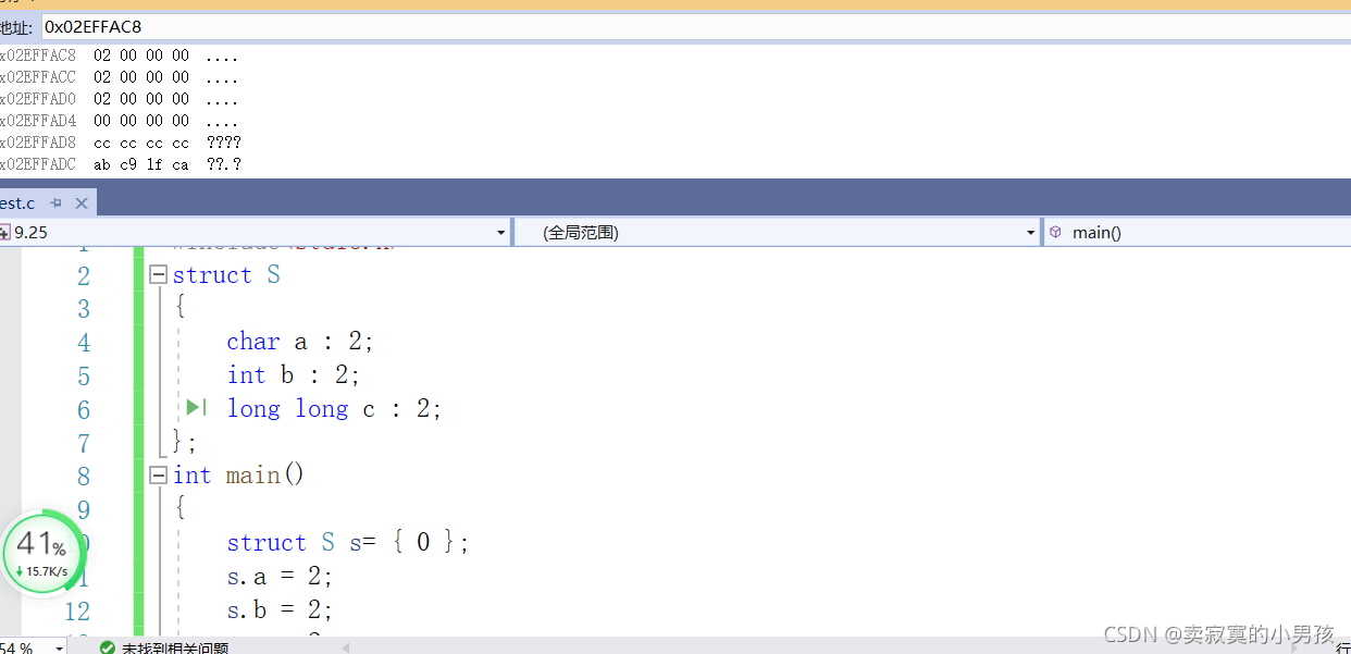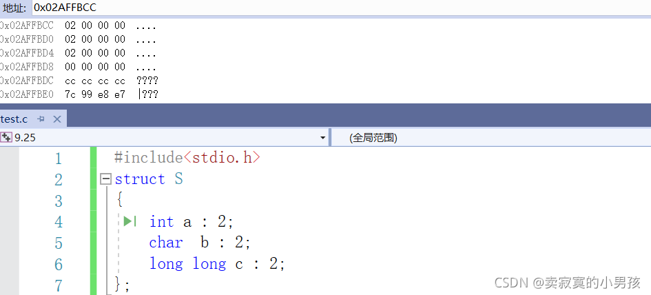 由于位段的特殊性,本文用的是VS编译器,其他编译器的结果可能是不同的。以在同一个位段中分别定义int,char,long long为例,这是因为三者所占大小具有一定的代表性,是不同的。经过几次测试,我发现同一个类型如果相邻且有多个的话,会占据同一快新开辟的内存,所以这里只以一个char或者int或者long long类型为例。