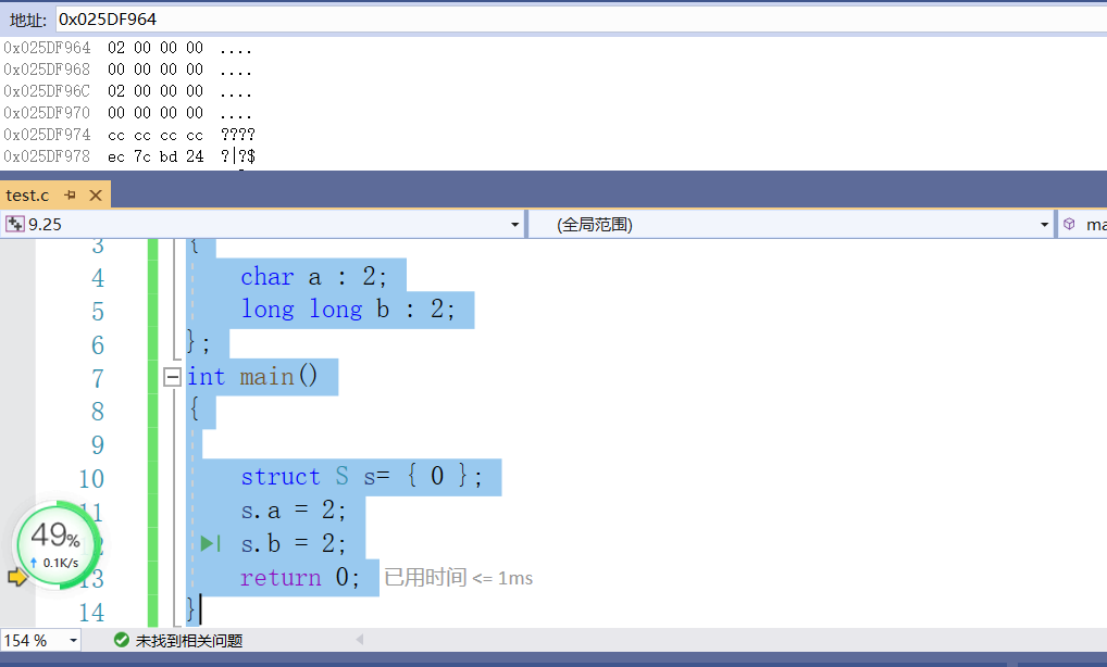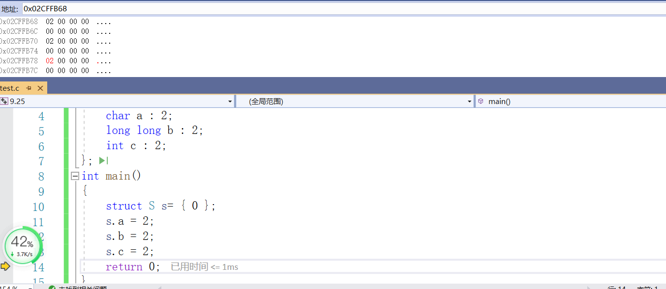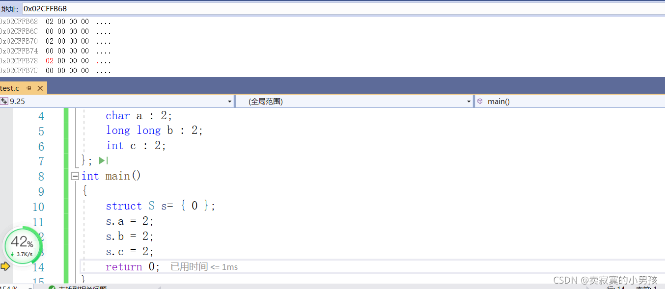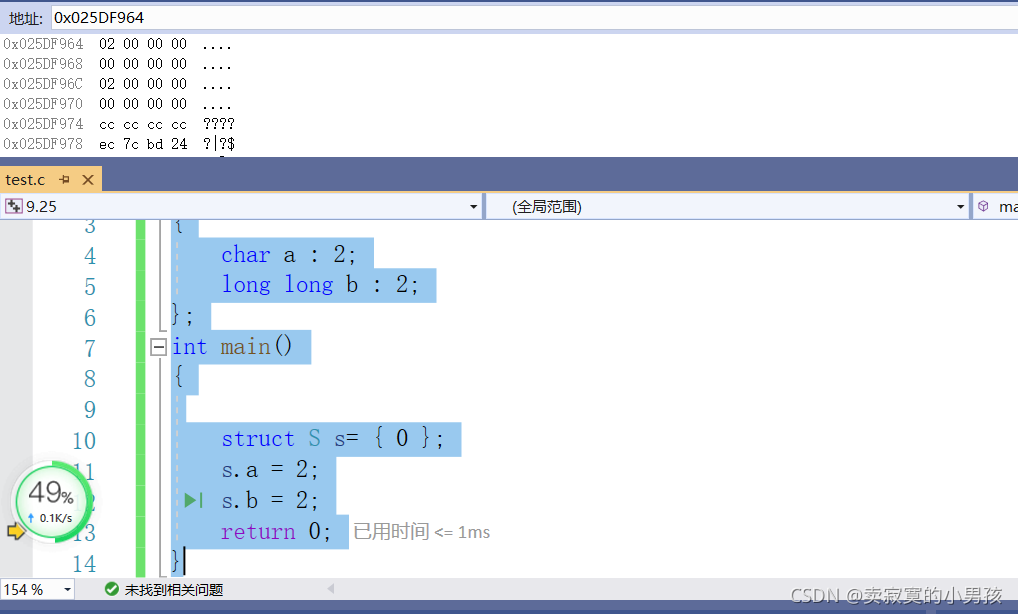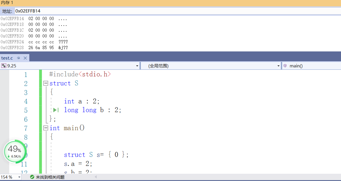 由于位段的特殊性,本文用的是VS编译器,其他编译器的结果可能是不同的。以在同一个位段中分别定义int,char,long long为例,这是因为三者所占大小具有一定的代表性,是不同的。经过几次测试,我发现同一个类型如果相邻且有多个的话,会占据同一快新开辟的内存,所以这里只以一个char或者int或者long long类型为例。