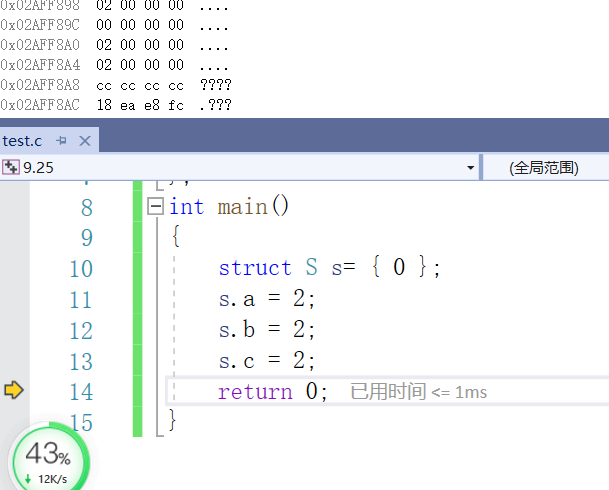 当定义顺序为char->int时,先为char开辟四个字节的空间,然后再重新为下面的int开辟四个字节的空间。再强调一下,如果char类型前面还有char类型,或者int类型后面还有int类型,则为它们开辟的空间仍然在为char开辟,或者为int开辟的空间中。