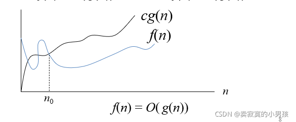 在大O阶中,存在一个c使得cg(n)>f(n),这个时候f(n)的增长率可以小于cg(n)(即g(n)的增长率)这样f(n)就永远小于g(n)了,但f(n)的增长率也可以等于(广义上的)cg(n),这种情况下两者基本是平行的,f(n)依然一直小于cg(n)(同时也是g(n))。因为c本身是固定的。