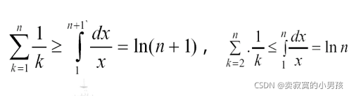 证明上述式子,先看前一个不等号,前面的式子表示的是一个积分,是连续的,后一个表示的是散点相加,我们知道积分的值表示的是函数图像与x轴围成的面积,我们对散点相加的乘以1,那么它也会表示一个面积,如第一个图所示,除去相同部分我们发现前一个积分面积剩下m-1到m-2这个梯形的面积,后面的散点图表达式剩下的是(n-m)个小三角,由于n是趋近于无穷大的,所以小三角的面积和一定大于(m-1)到(m-2)这个梯形的大小。当n是常数时无法判断。