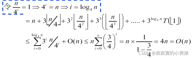 我们观察式子,T(n)<=cn-2b+1,由于b是任取的整数,所以当b>=1时,T(n)<=cn-b<=cn,所以成立,T(n)=O(n)。