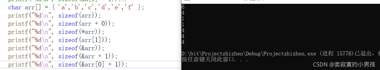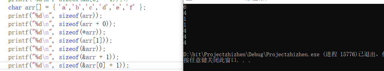 printf("%d\n", sizeof(arr));//6 计算的是数组的大小,每个元素一个字节,一共有6个元素。