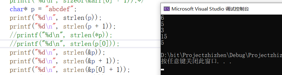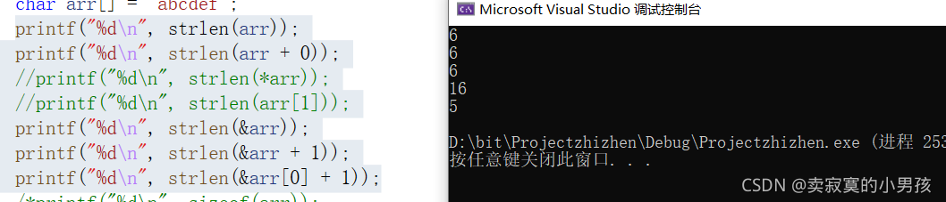 printf("%d\n", strlen(arr + 0));//6 同理加0与第一个是等价的。